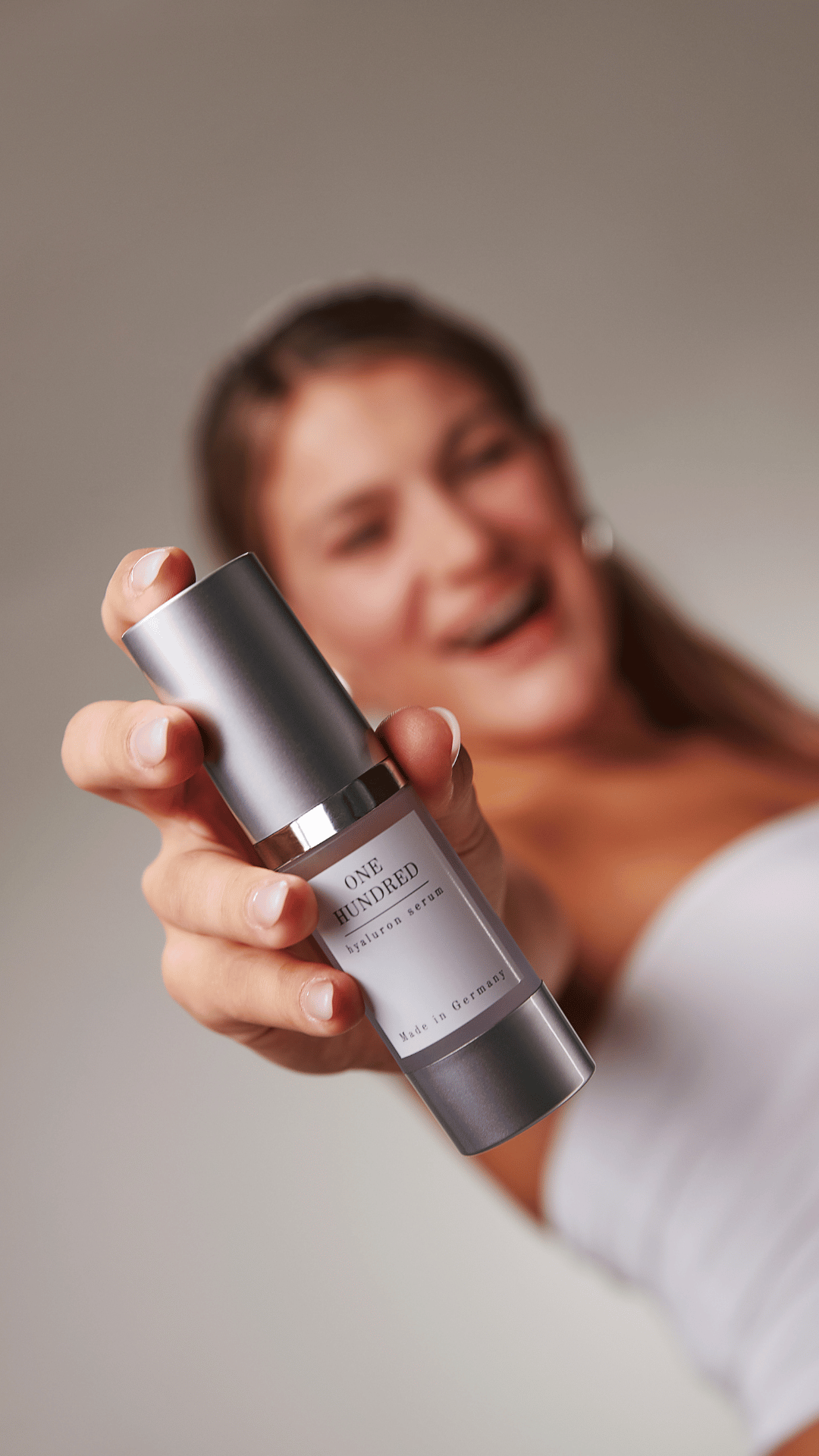 Beginne mit der gründlichen Reinigung deiner Haut und idealerweise dem ONE HUNDRED Hyaluron Tonic.